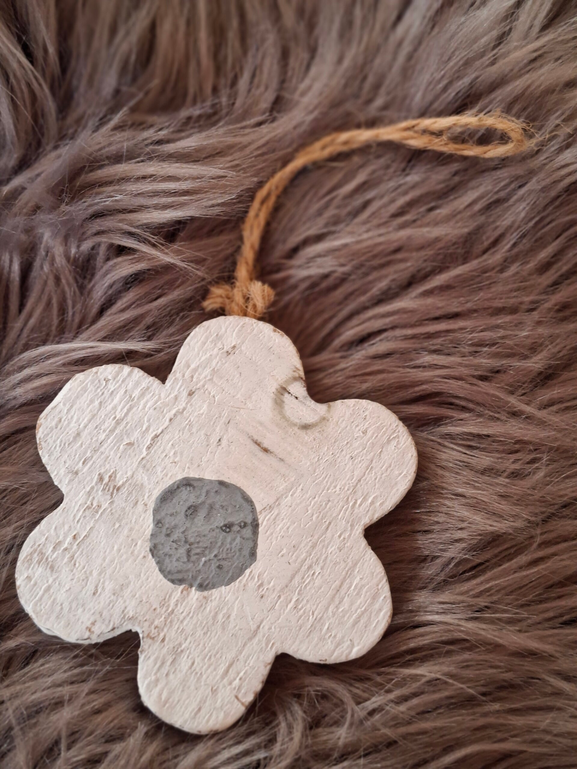 2 witte houten bloemen 9,5 cm